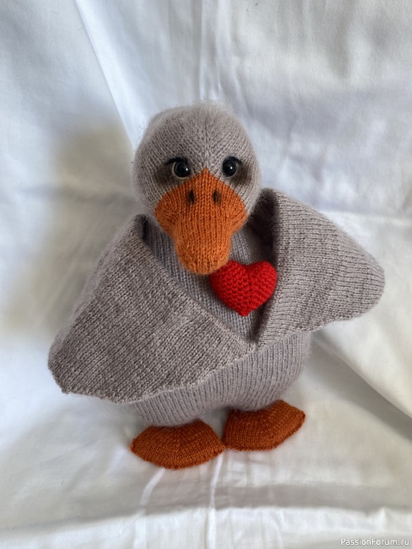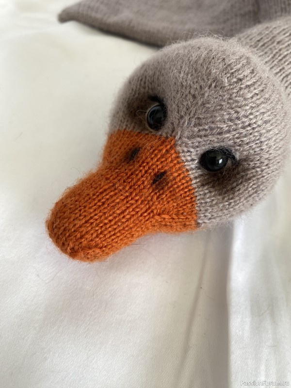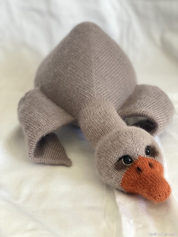 Наталья, всё встали в очередь — с твоим Гусем-Обнимусем обниматься. В вязанном варианте, да ещё с таким удачным выбором цвета это делать очень приятно! Какой красавчик