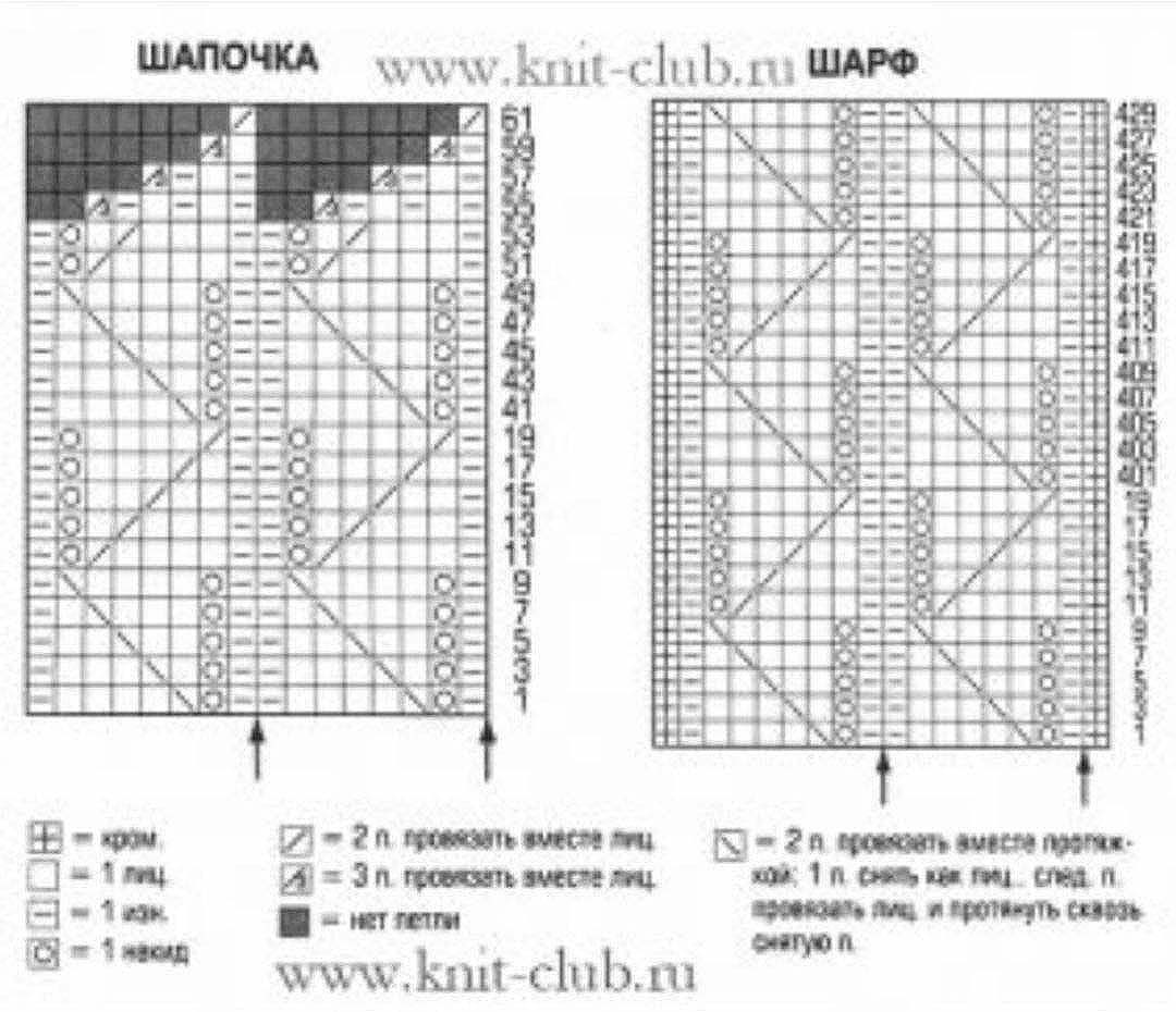 В промежуточных круг. р. вязать п. по рисунку, накиды - лиц. В ширину повторять раппорт = сначала 8 п. между стрелками.