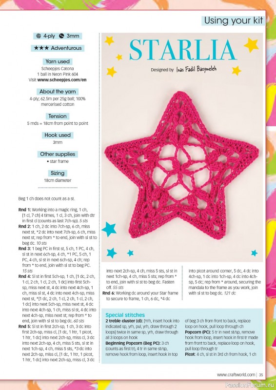 Журнал по вязанию крючком оригинальных и ярких проектов. В номере модели одежды и аксессуаров для детей и взрослых, забавные игрушки, подушки, салфетки, коврики, уютные пледы и многое другое.