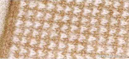 1 ряд: присоединить пряжу цвета Б, *1 л, Л1Н; повторять от * до последней петли, 1 л.