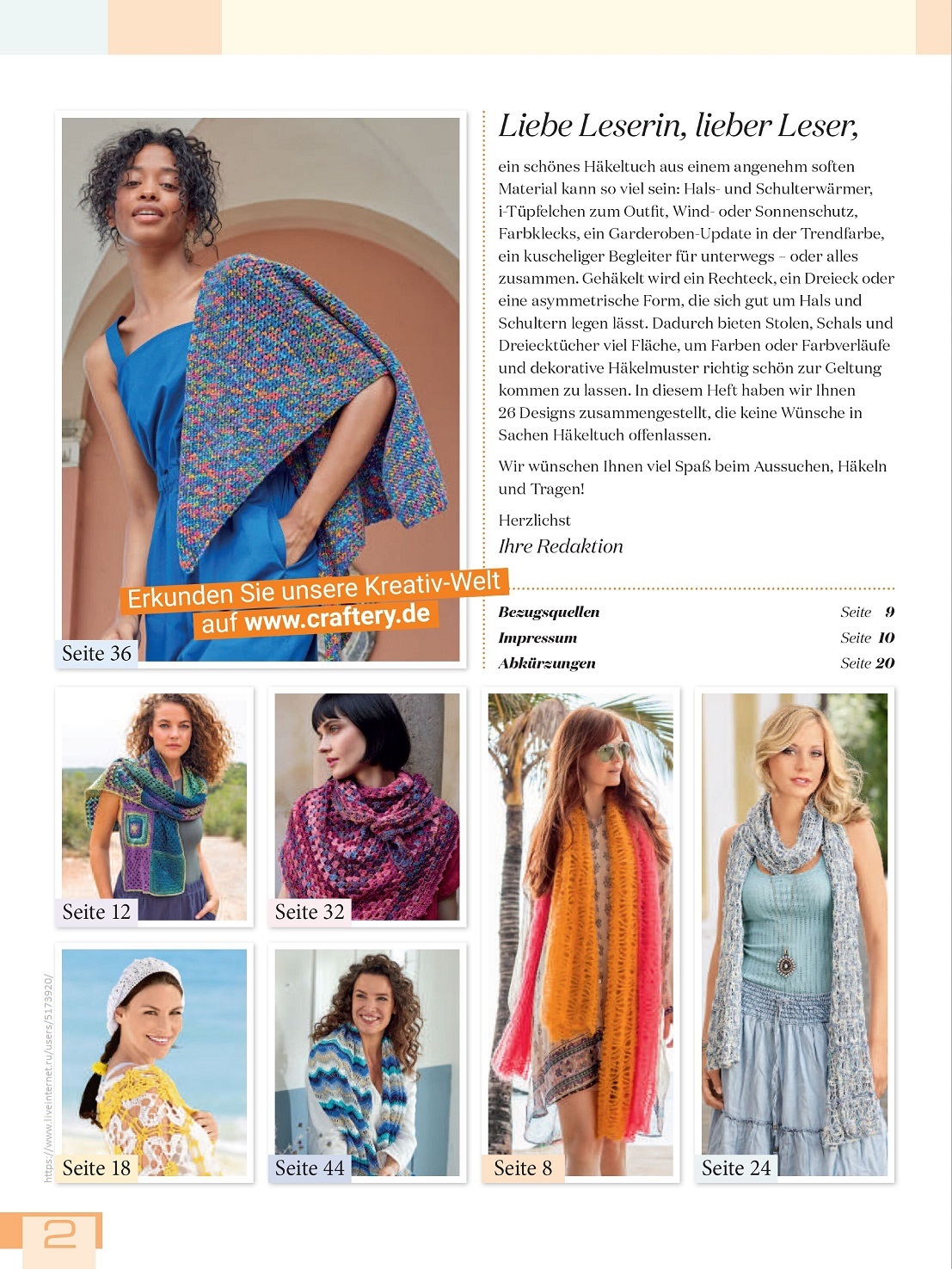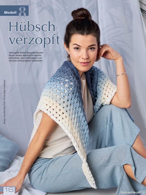 Немецкий журнал «Meine Hakelmode Sonderheft» предлагает проекты для вязания крючком. В этом журнале вы найдете 26 проектов вязания: палантины, шарфы, шали.