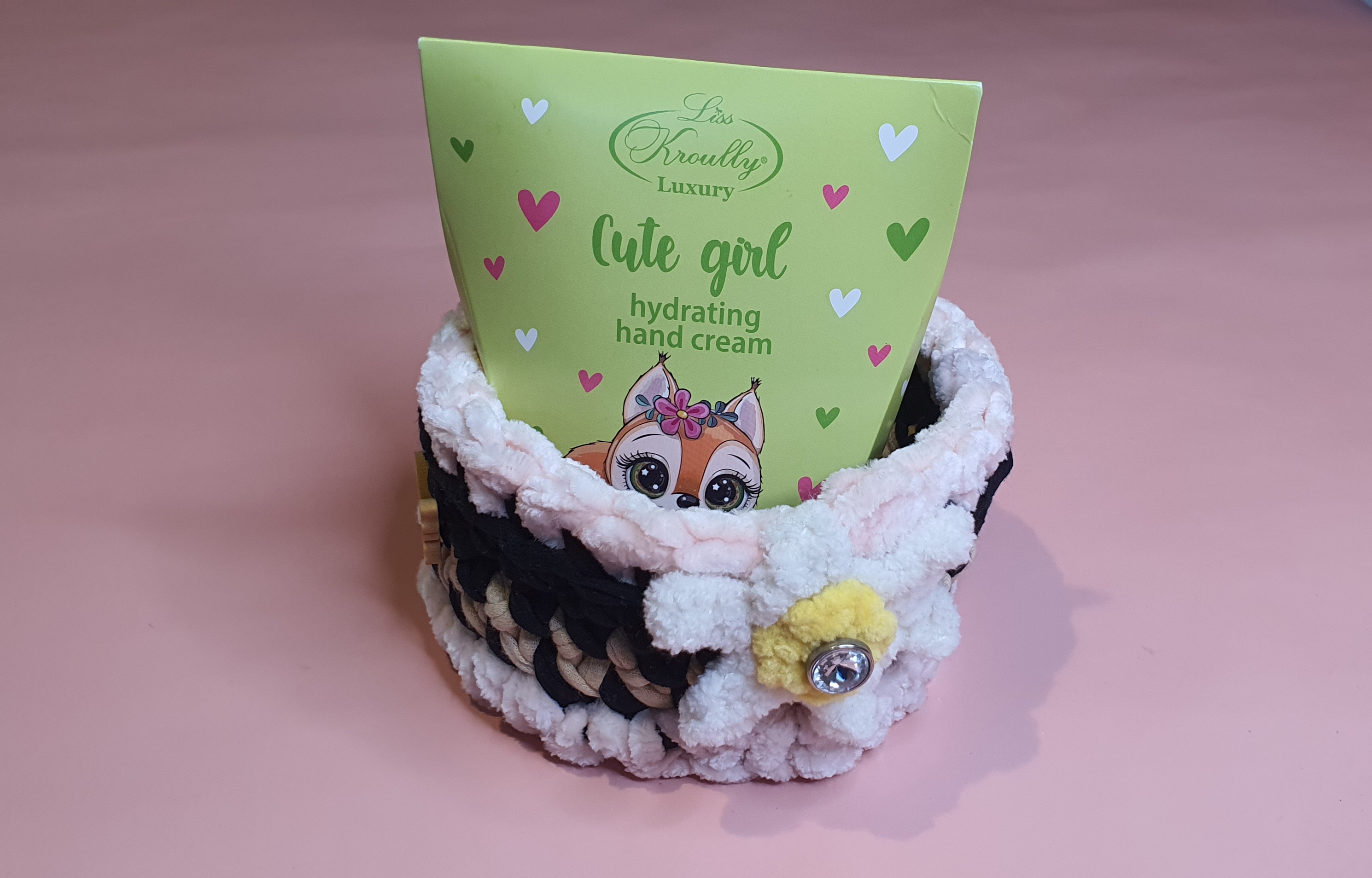 Связала для учительницы небольшую корзинку крючком с цветком и бабочками.Хотелось подарить что то вязаное и вот пришла такая идея. Надеюсь ей понравилась она)