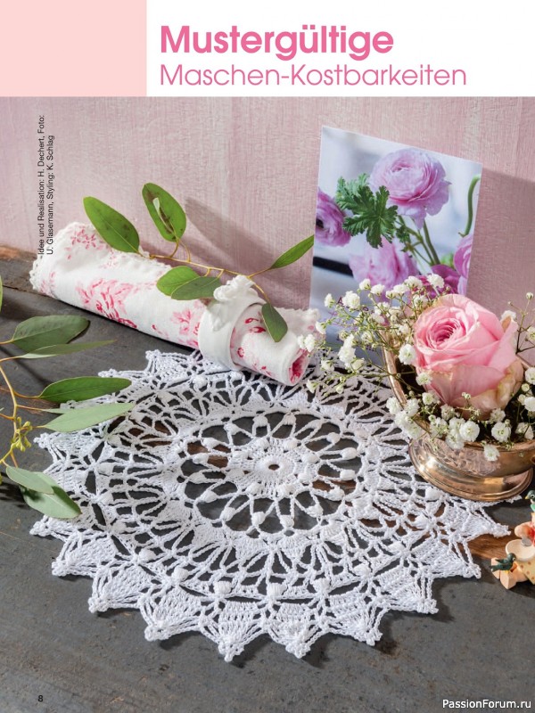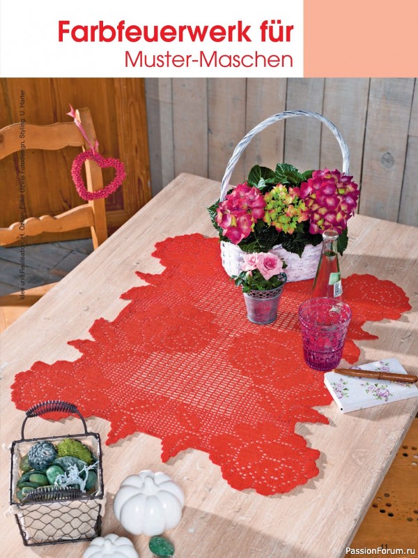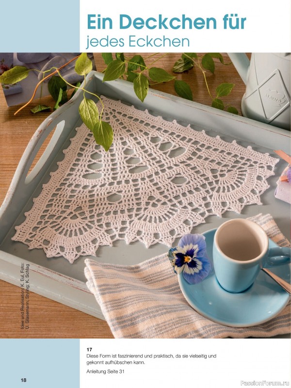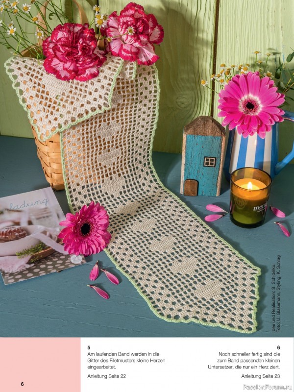 Журнал по вязанию крючком ажурных салфеток. В этом выпуске вас ждут великолепные идеи, как сделать свой интерьер еще более уютным и изысканным. Филигранные салфетки, разноцветные дорожки, занавески будут долго радовать вас и украшать ваш дом.