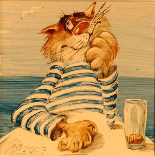 Сердобольная бабуля наливает ему по второй….К концу дня, в дым пьяный кот пришел в совершенно скотское состояние - орал не переставая матерные песни и выл так, что у соседей кровь стыла в жилах.