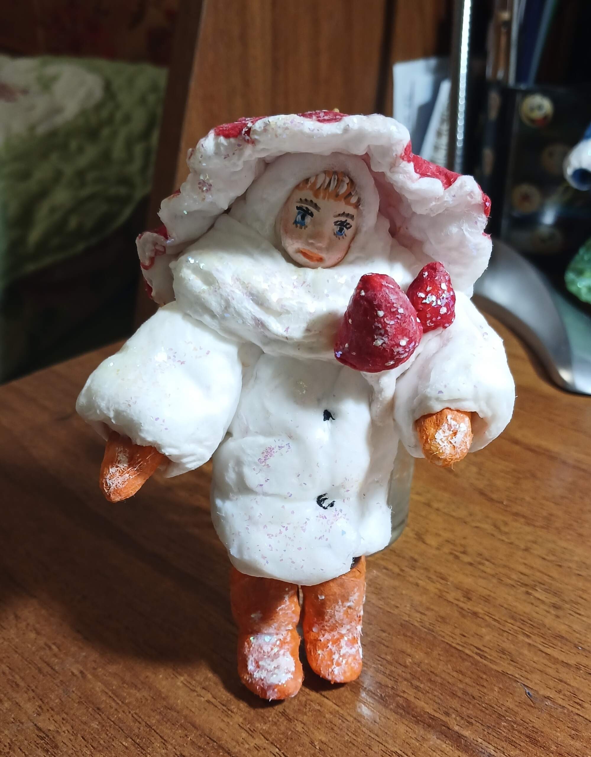Думаю, создать такую игрушку не так уж и просто, нужно потрудиться. Со временем, уверена, опыт в рисовании привлекательных личиков обязательно придёт! А с одежкой, на мой взгляд, всё в порядке.
