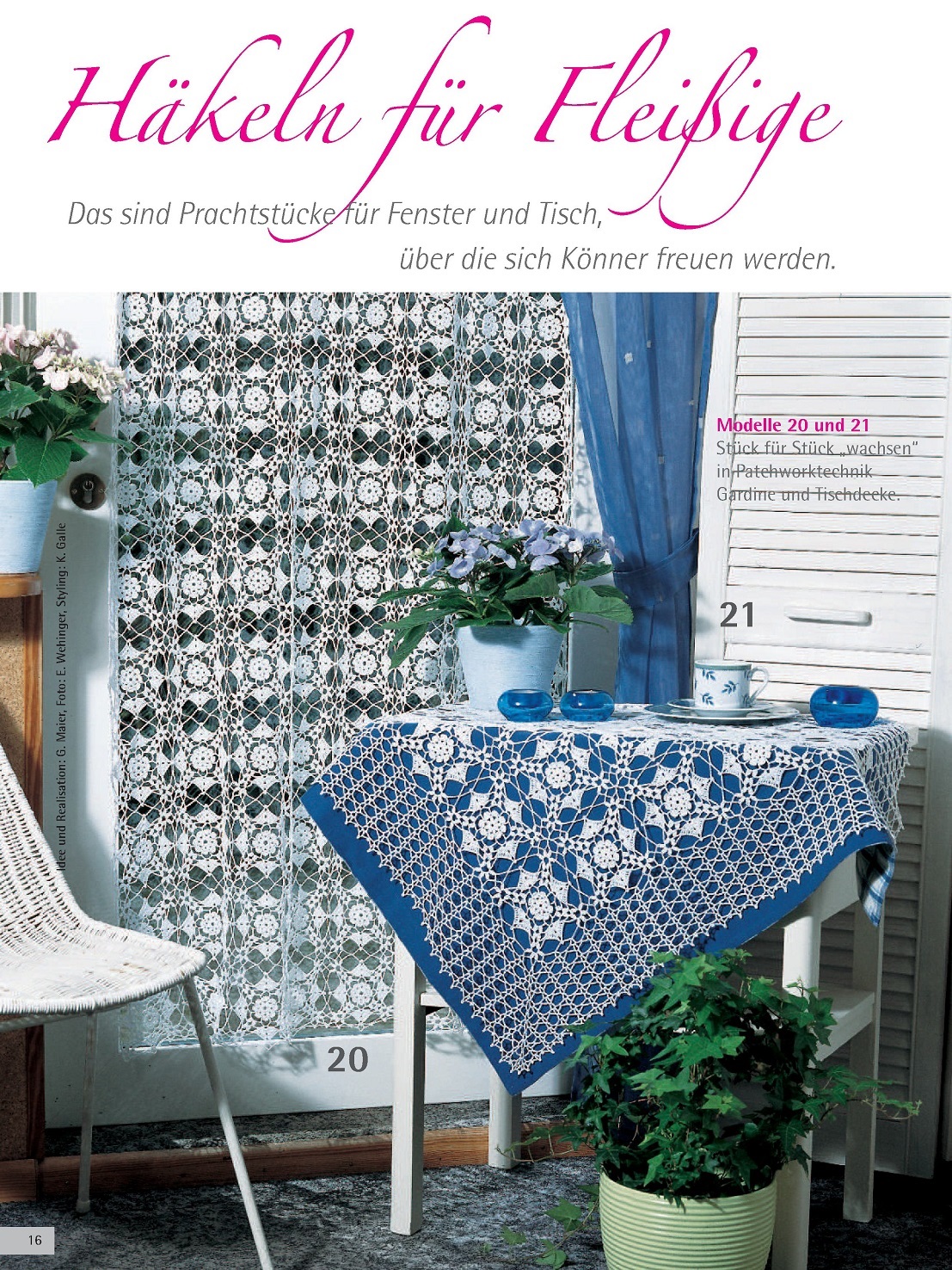 Немецкий журнал по вязанию крючком. Здесь вы найдете 50 схем волшебного украшения окон крючком. Квадратные, прямоугольные, овальные или полукруглые – с этими шторами вы сможете преобразить свои окна.