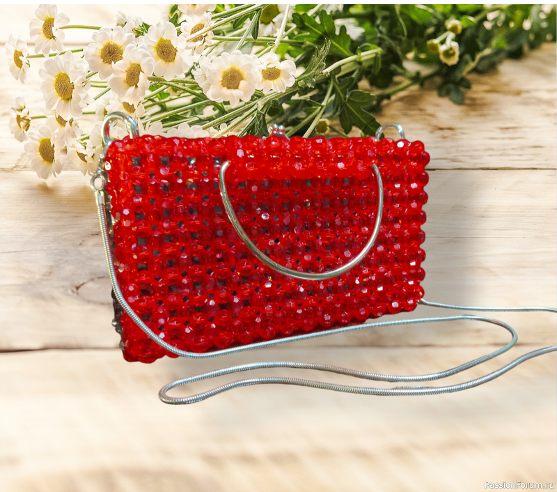 Иногда случай, создает для нас изумительные условия. Так произошло и у меня. Остались черные бусины от предыдущего изделия, но на сумку не хватает. А что, если совместить два цвета. Выплетать арнаменты не хотелось, клетка- это бонально. Вот и решила совместить два цвета, сделав одну половину сумки красной, а другую черной. А тут еще и фильм вспомнился "Красное и черное". А чем не название для сумочки. Значит, быть новой сумке.