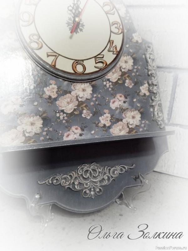 Часы-полочка настенные. Часы имеют небольшую полочку и крючки. Выполнены в технике декупаж. Цена - 2500 руб. Отправка почтой Росси бесплатно.