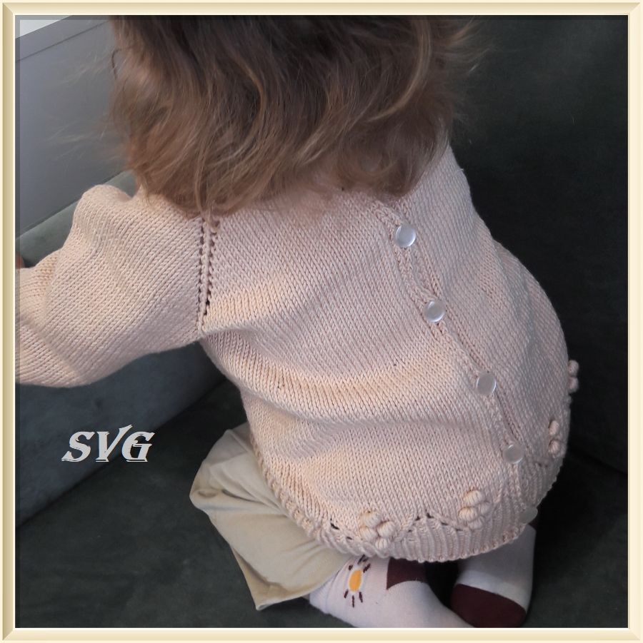 Реглан сверху без швов, росток на 5 поворотов с каждой стороны, застежка на спинке до конца