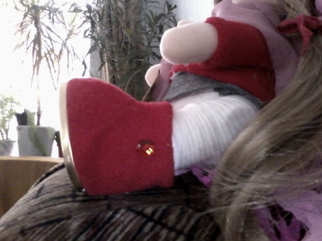 Когда у нас в городе выпал первый снег - я получила подарок от замечательной феи-снегурочки Анастасии (naska). В коробке, которая оформлена как настоящий подарок, лежало много всего интересного. Самая замечательная авторская кукла (сделанная специально для меня) - с чудесными волосами, с двигающимися ручками и ножками. Ножки одеты в сапожки, которые можно снимать. На голове - колпачок с бубенчиком. Это гномочка - Дарина. Я её так назвала. Она мне привезла на санках волшебный мешочек. В нем богатства для хомяка - ленточки, цветочки, подвесочки. А еще салфетки для декупажа (у меня ни одной такой нет). Салфеточки для украшения стола и коробка с конфетами - она фотосессии не дождалась (извиняюсь). Еще раз спасибо моей Снегурочке - Анастасии за замечательные подарки. Её авторские куклы замечательные, я рада, что одна из них досталась мне