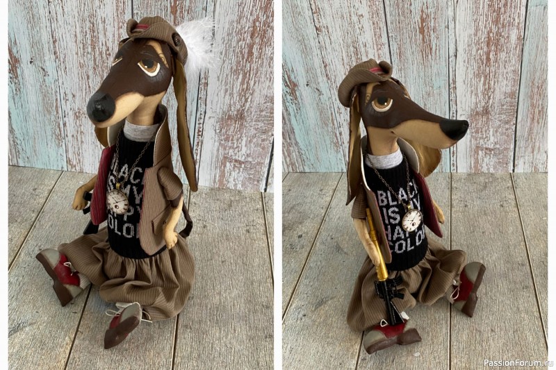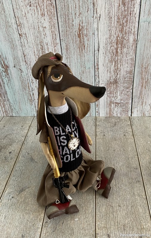 Интерьерная игрушка "Такса охотник" по МК А.Голеневой.