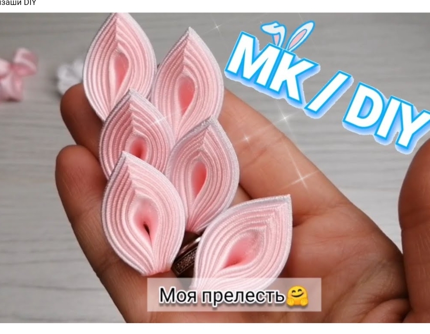 В этом видео уроке я хочу показать как сделать красивый цветок в сине белых оттенках из атласной ленты шириной 5 см. Основные лепестки композиции: - тройной острый лепесток со спиралью / тройной крученый лепесток канзаши; - простой острый лепесток казаши;