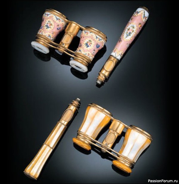 Какие удивительные вещицы для театралов! Кругом эмаль, золото, жемчуг, бриллианты! Какое золотое время было, когда такие необходимые вещи были сделаны как произведения искусства! Мне кажется, что сейчас всю эту красоту заменила пластмасса. Спасибо, Верочка за подборку, всегда васхищаюсь работами мастеров-ювелиров !