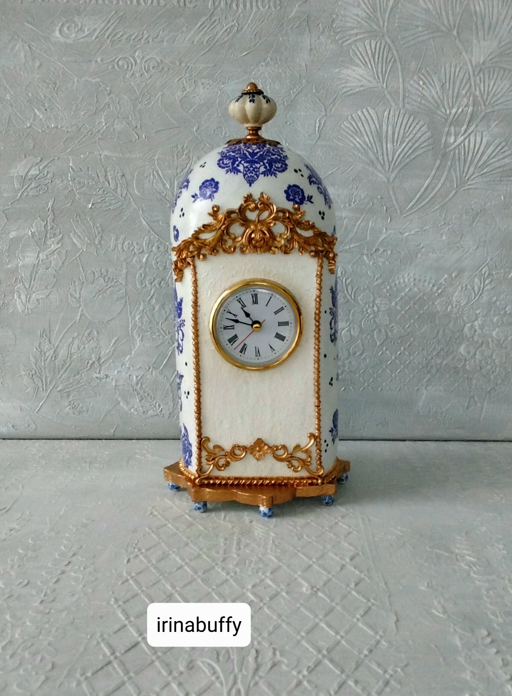 Ирочка, это шедевр! Сочетание белого с синим, отделка золотом, сама форма — все в превосходной степени! Желаю, чтобы эти часы отсчитывали для Вас только счастливые минуты !