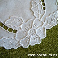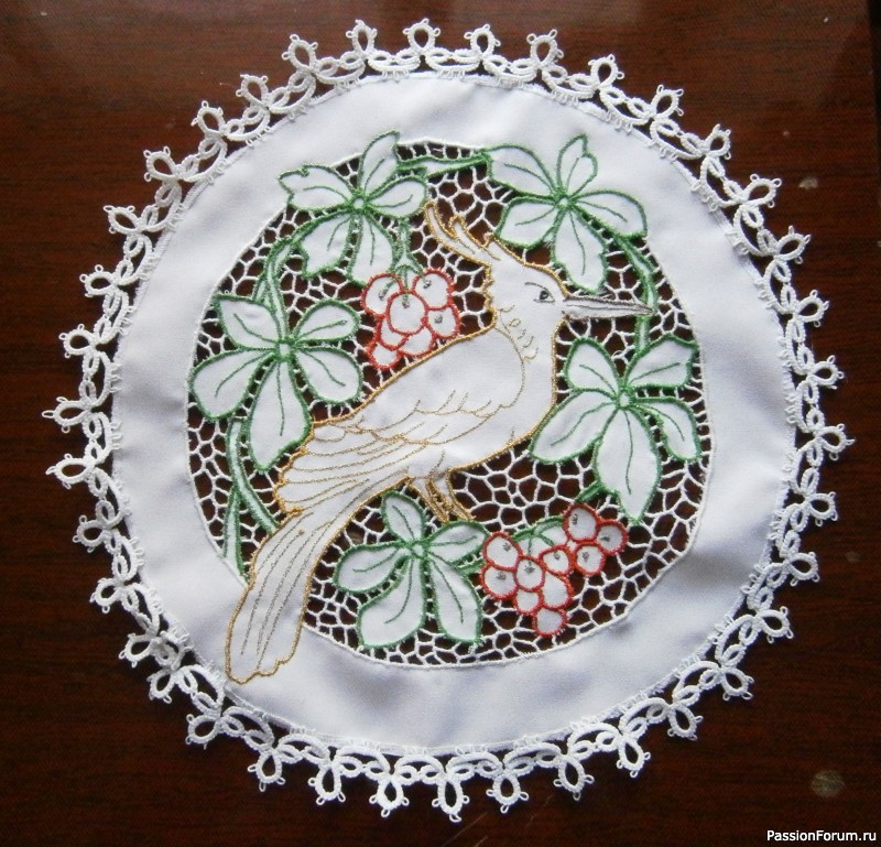 Техника вышивки ришелье. Кружево — фриволите. Размер работы диаметр 30см