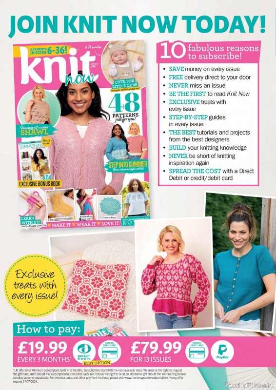 "Knit Now" - журнал по вязанию на спицах. В каждом выпуске журнала предложена коллекция современных, стильных, трикотажных моделей одежды и аксессуаров.