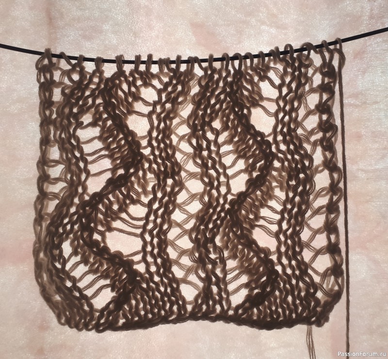 Необычный винтажный ажурный узор. Накиды и убавления делаются в каждом ряду. Раппорт 10 петель и 12 рядов.