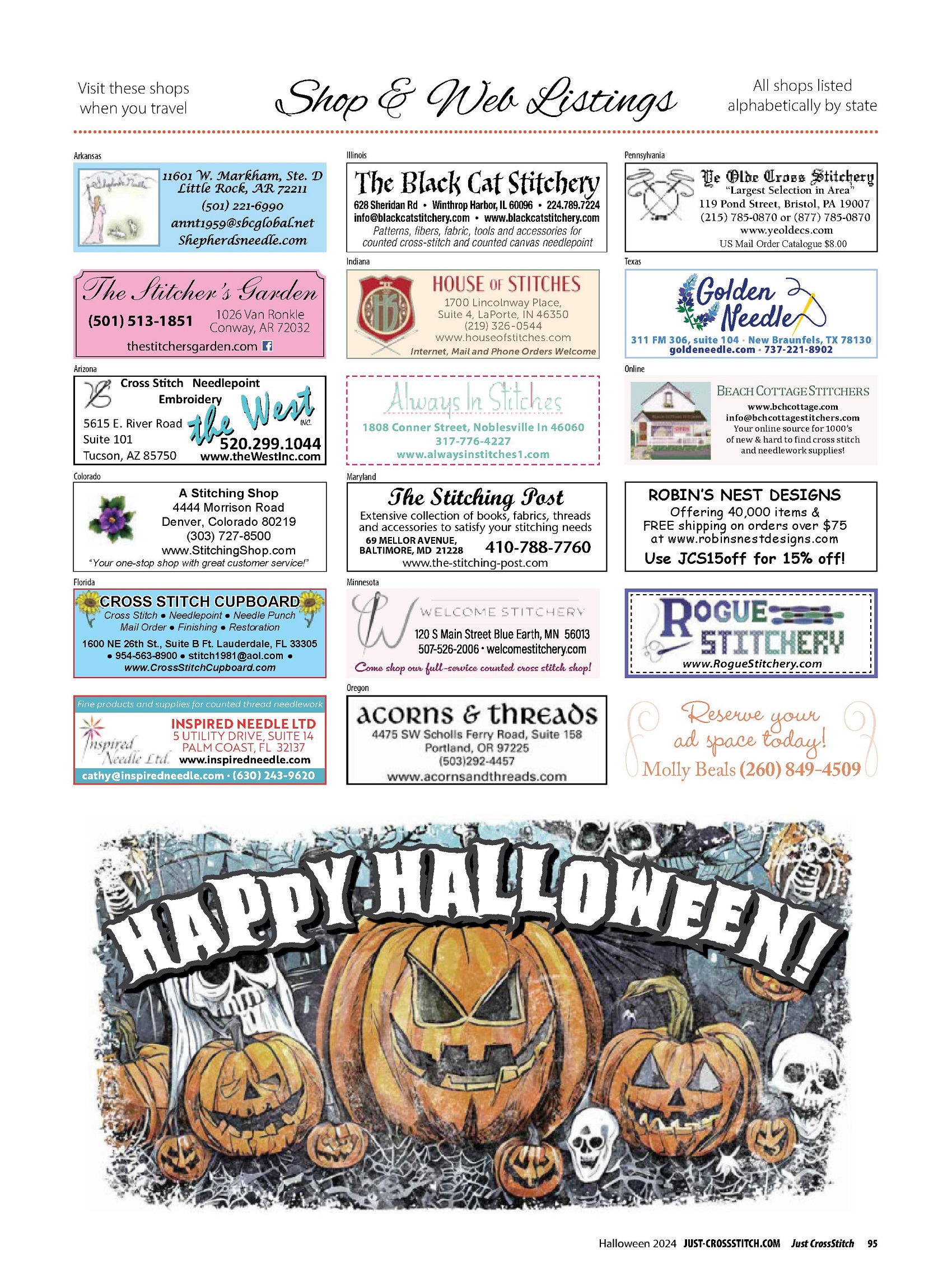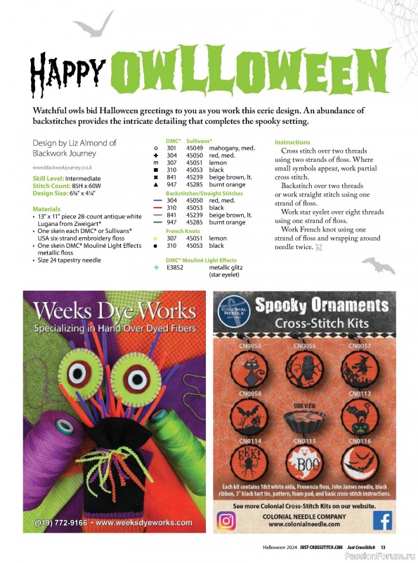 Коллекция вышивки в журнале «Just CrossStitch - Halloween 2024»