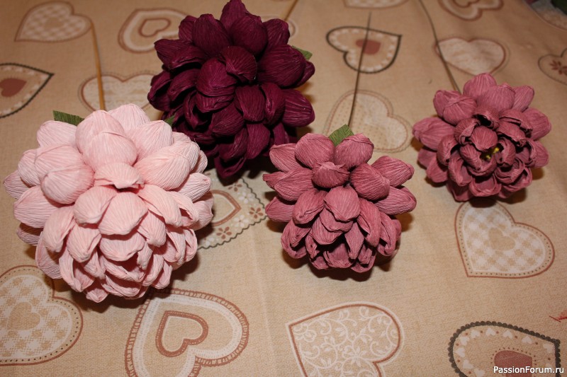 Если сделать лепестки чуть поуже и собирать в одном направлении — будут хризантемы.