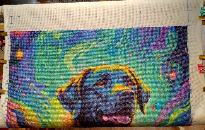 Вот и появились мечтательные глаза лабрадора.Осталась последняя полоса-сплошной космос))))