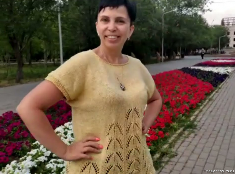 Всем доброго времени суток и отличного настроения! На создание футболки вам понадобится нить - полухлопок ( любого производителя) плотностью примерно 340-360м в 100гр. На изделие 46-48 размера понадобится 220-250гр. Спицы № 3.5.