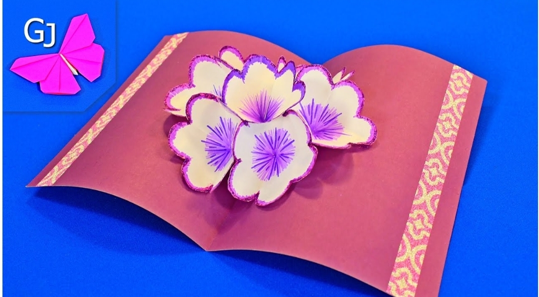 3D открытка с цветами в технике квиллинг. Видео МК