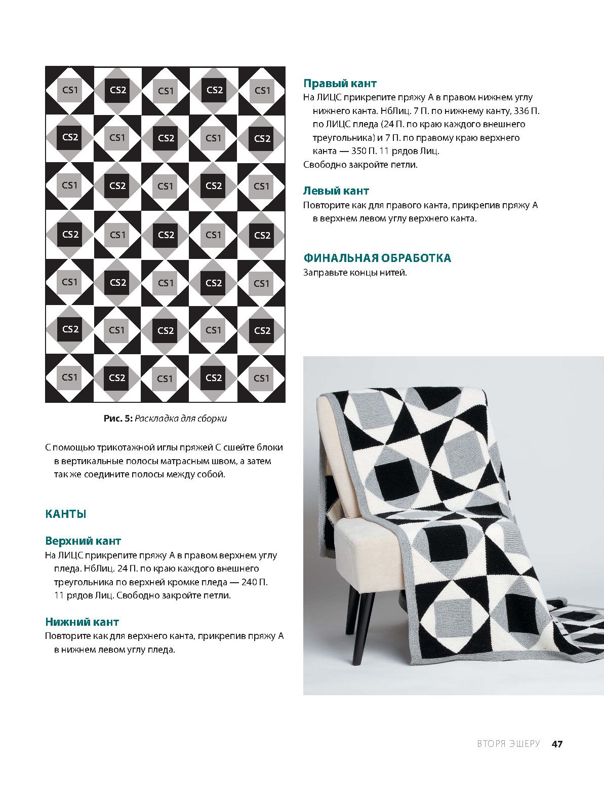 Огромная коллекция инновационных конструкций и уникальных дизайнов вязаных пледов с вау-эффектом! Оптические иллюзии, необычные конструкции, различные варианты цветовых сочетаний. И все это в подробных и понятных инструкциях и четких схемах с пояснениями.