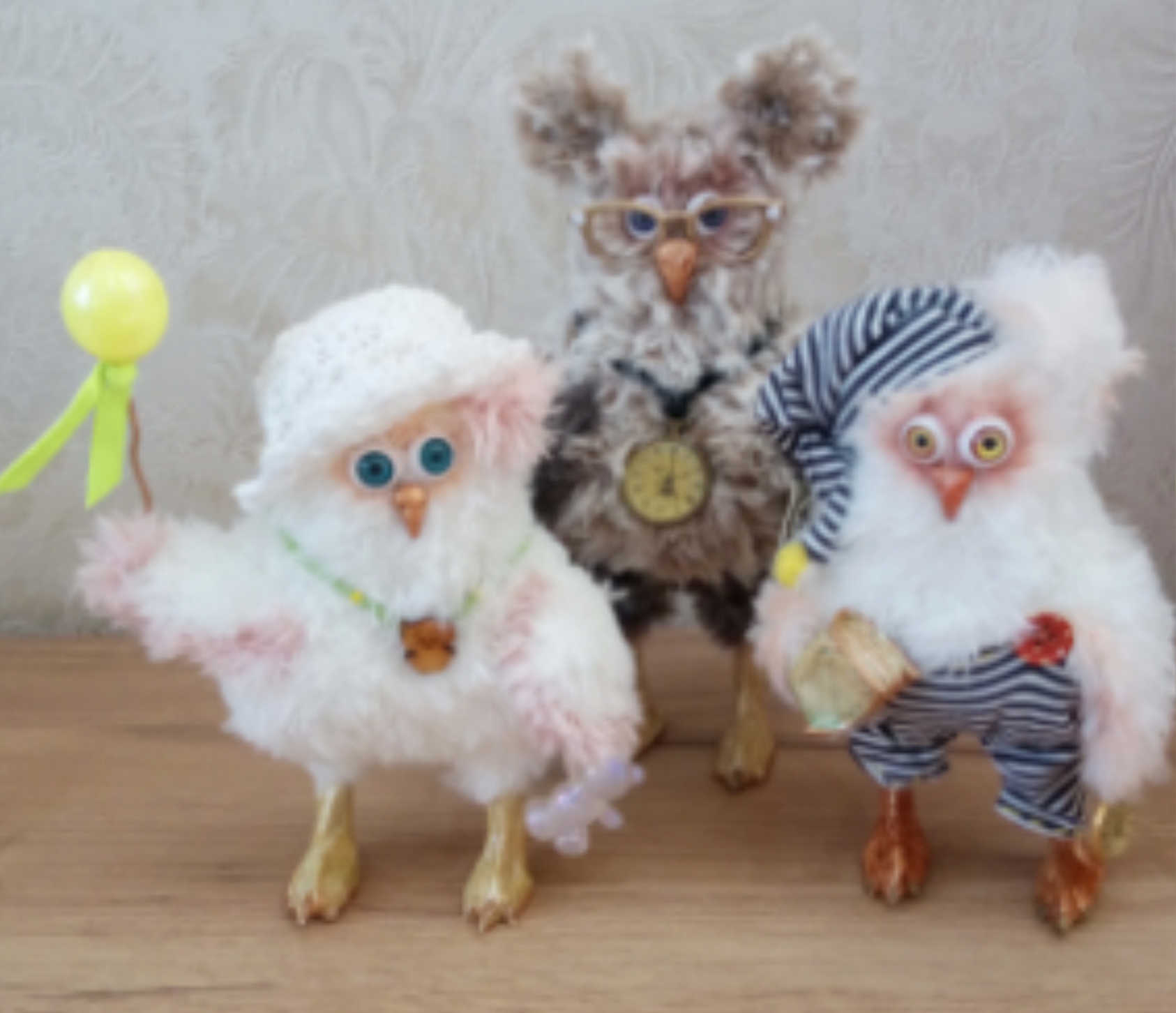 Интерьерная кукла. Выполнена в смешанной технике. Пряжа, глина, декор. Могу сделать, по вашему желанию, и сову повара и космонавта