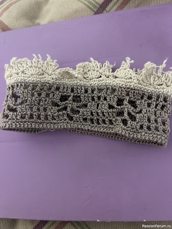 Обвязку веерочками возьму себе на заметку. До сих пор с благодарностью пользуюсь Вашим методом вязания витых столбиков, и инструментами для вязания. И ниточки еще не закончились.