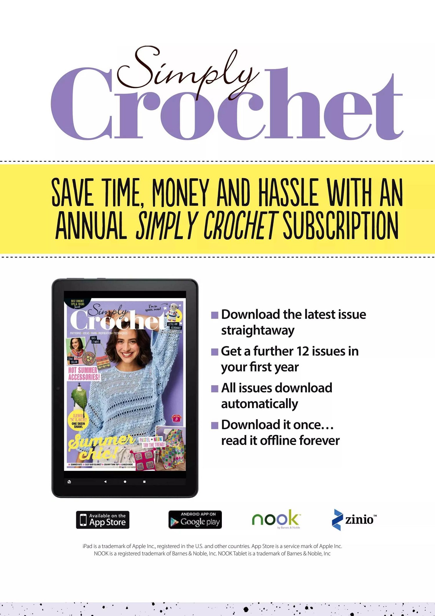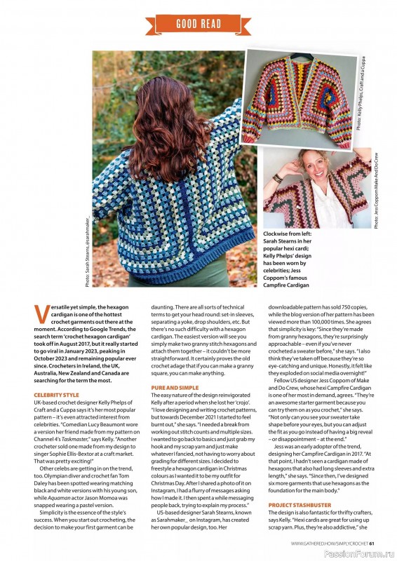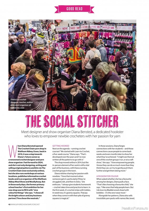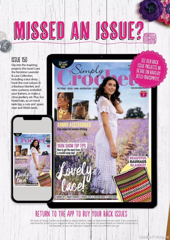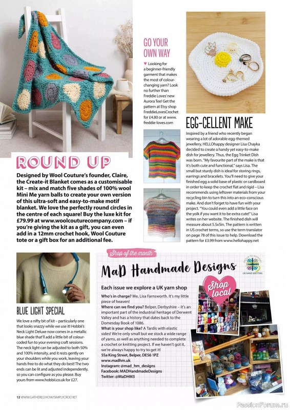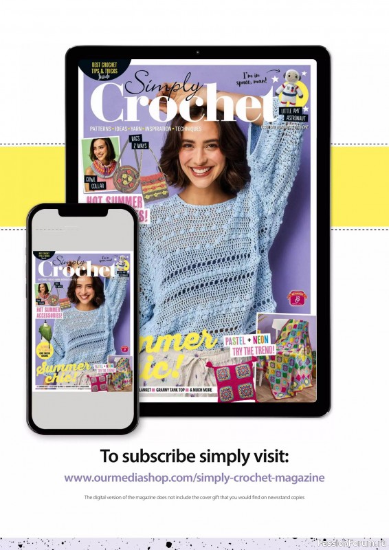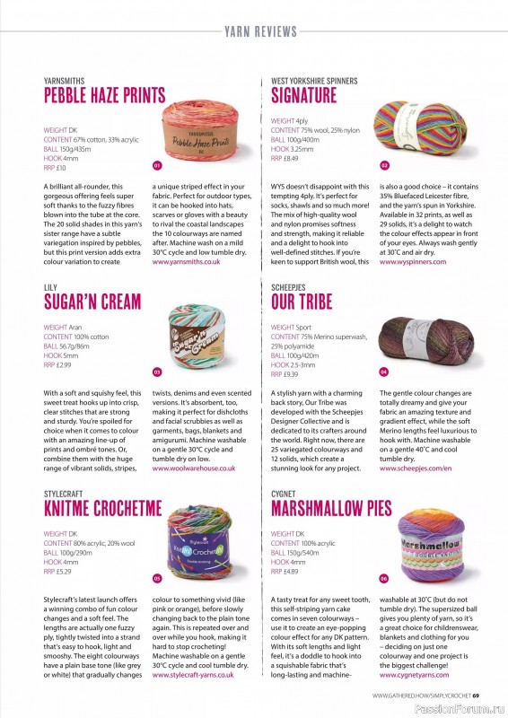 Журнал "Simply Crochet" посвящён вязанию крючком. В каждом выпуске этого журнала представлены проекты для вязания моделей одежды для взрослых и детей, аксессуаров, игрушек, предметов интерьера для дома.