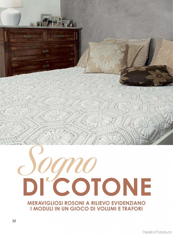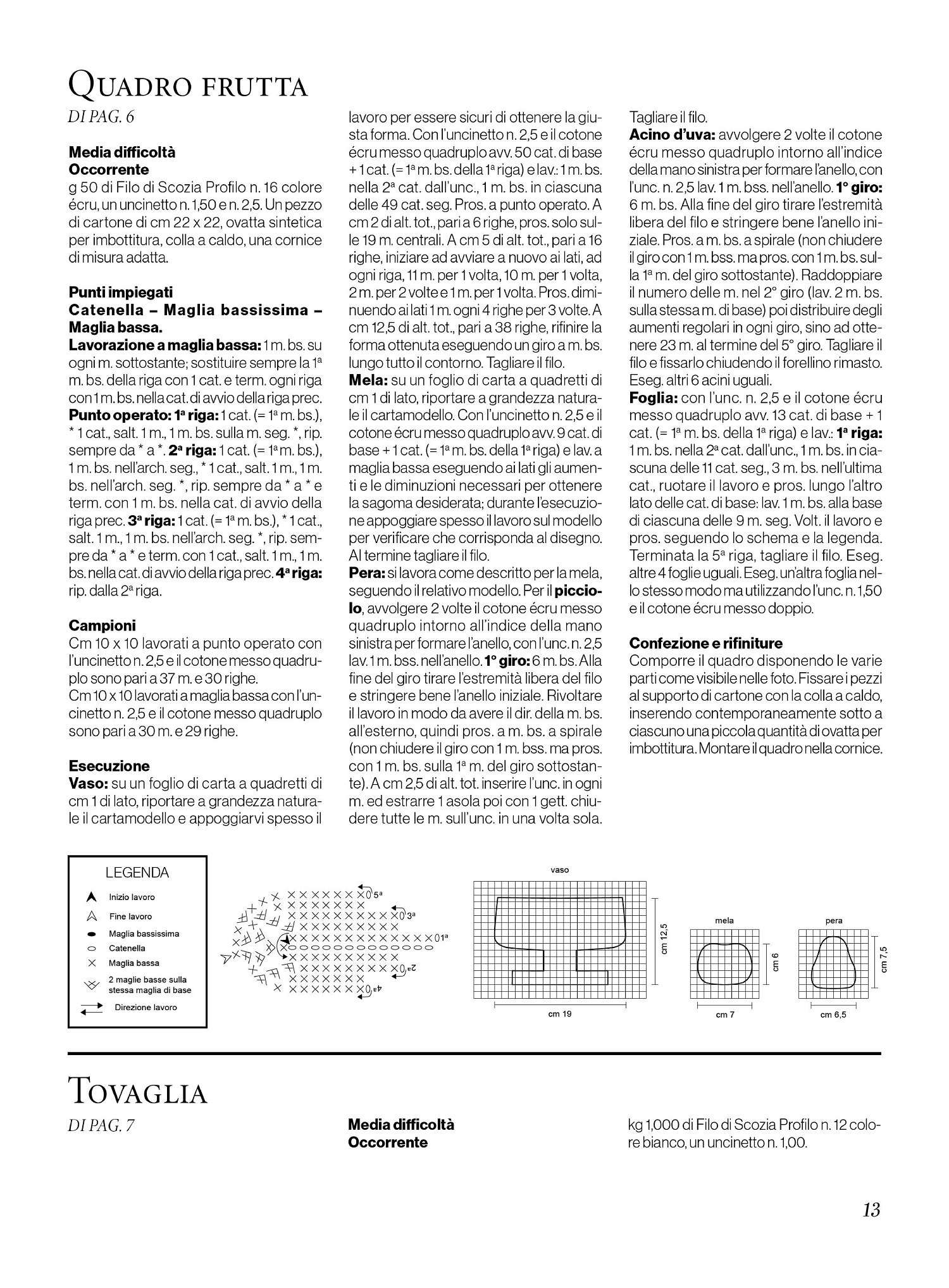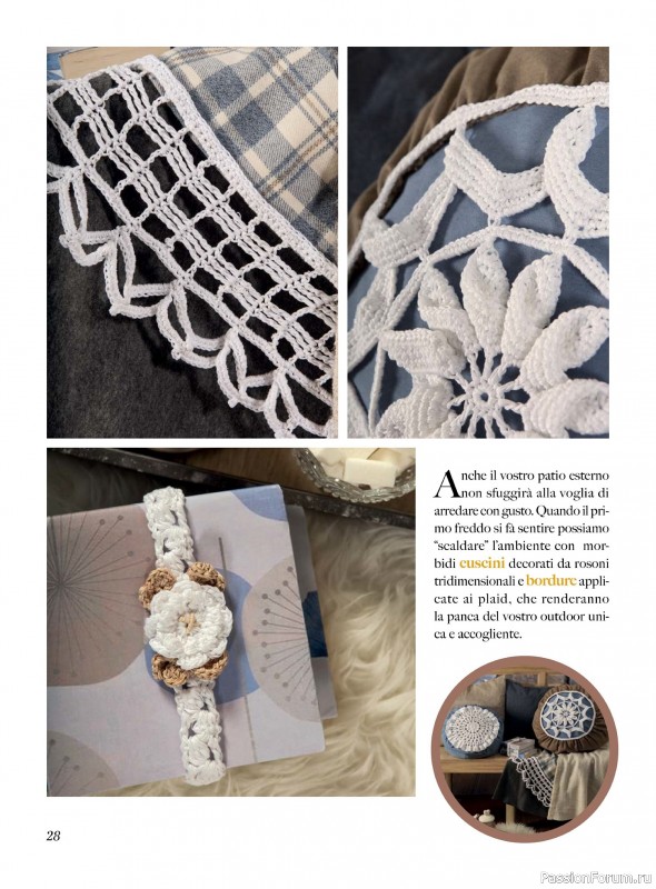 Итальянский журнал по вязанию крючком. В каждом номере проекты и идеи для создания уюта в вашем доме: занавески, бордюры, салфетки, кайма, связанные крючком в филейной технике. А также сумки, пледы, подушки, коврики, прихватки и многое другое.