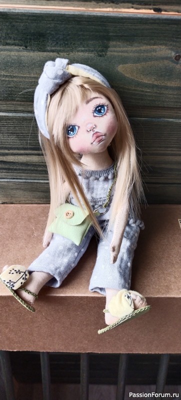 Эта кукла получилась грустной,но все же милой.Она в летнем наряде и сандаликах.