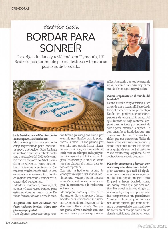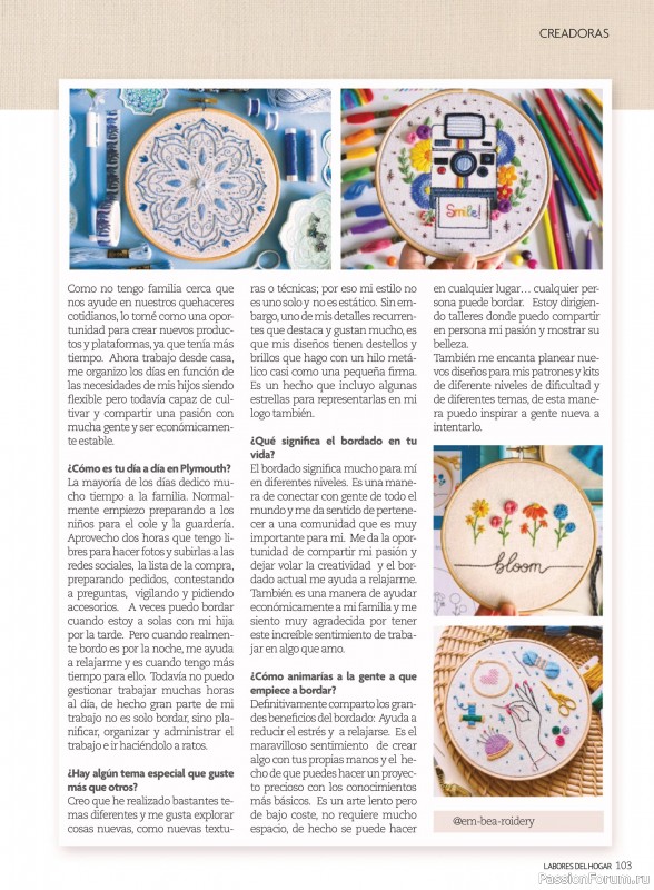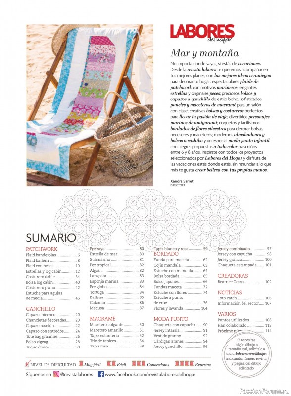 Красочный испанский журнал посвящен рукоделию. Разнообразные рукодельные проекты и идеи в различных стилях под одной обложкой: шитье, вязание крючком и спицами, машинная вышивка, изготовление игрушек.