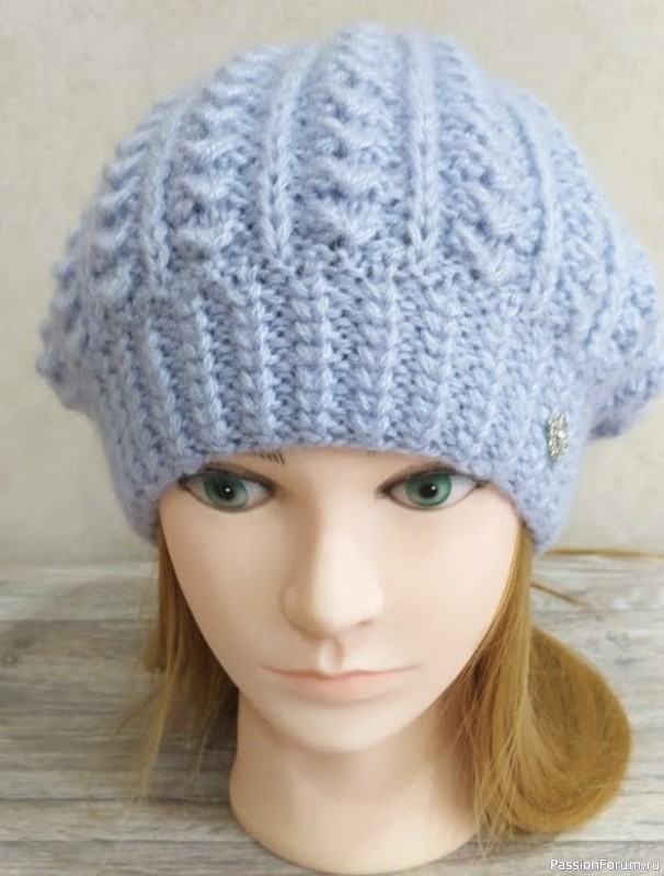 Женская шапка-берет узором "Гусиные лапки". Видео МК