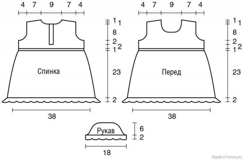 Через 5 см от начала горловины закрыть петли для плеч, как описано для спинки.