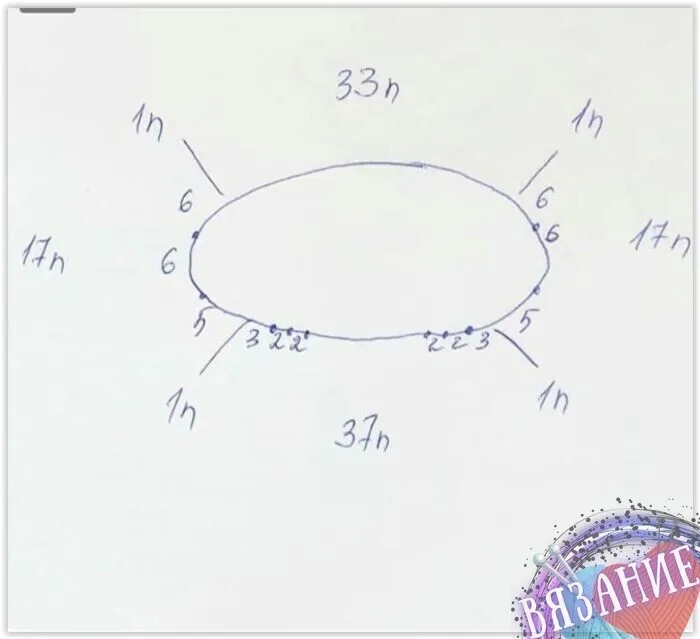 Вяжем росток поворотными рядами тоже по схеме. Не забываем делать прибавки с каждой стороны регланной линии в каждом втором ряду.