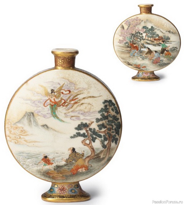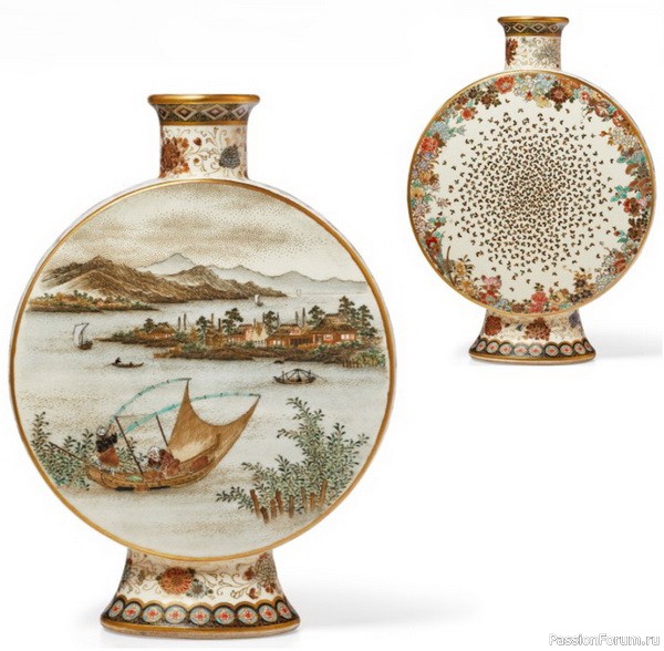 Лунная фляга из фарфора Сацума, мастер Ябу Мейзан, высота 13,3 см, Япония, конец XIX века.