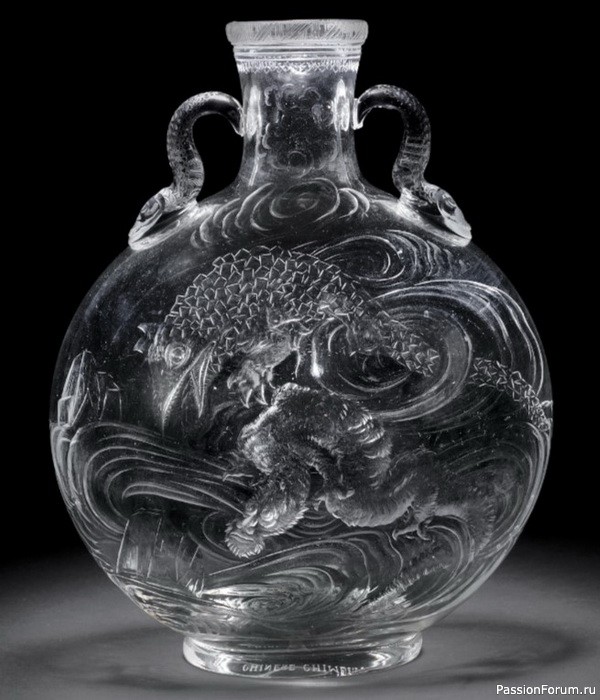 Лунная фляга из хрусталя с резными драконами, вероятно, работы Уильяма Фриче, английская фирма "Томас Уэбб и сыновья", высота 32 см, около 1890 г.