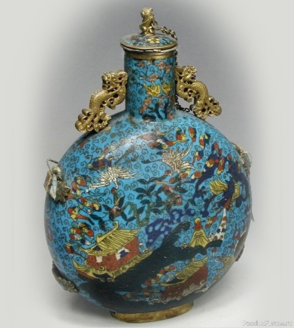 Лунная фляга, украшенная перегородчатой эмалью, мастер Киото Намикава, мастерская Намикавы Ясуюки, высота 17 см, Япония, конец XIX века.