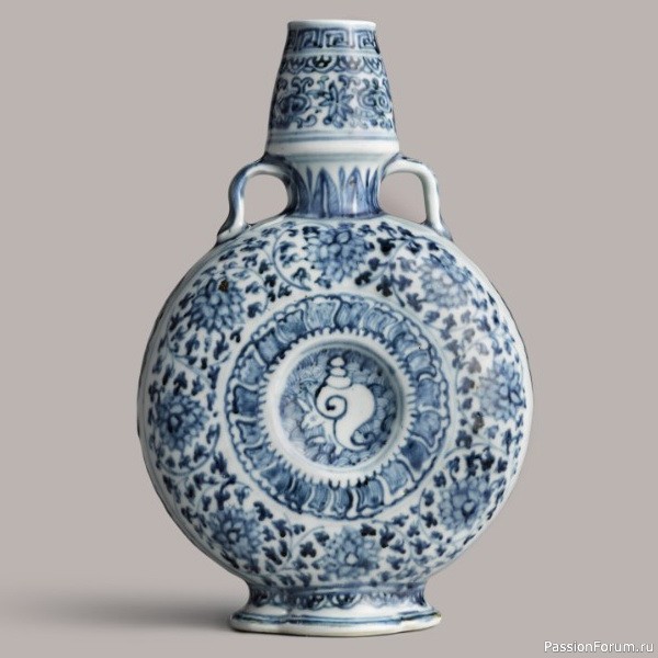 Бело-голубая фарфоровая лунная фляга, высота 24,5 см, Китай, династия Мин (1368-1644).