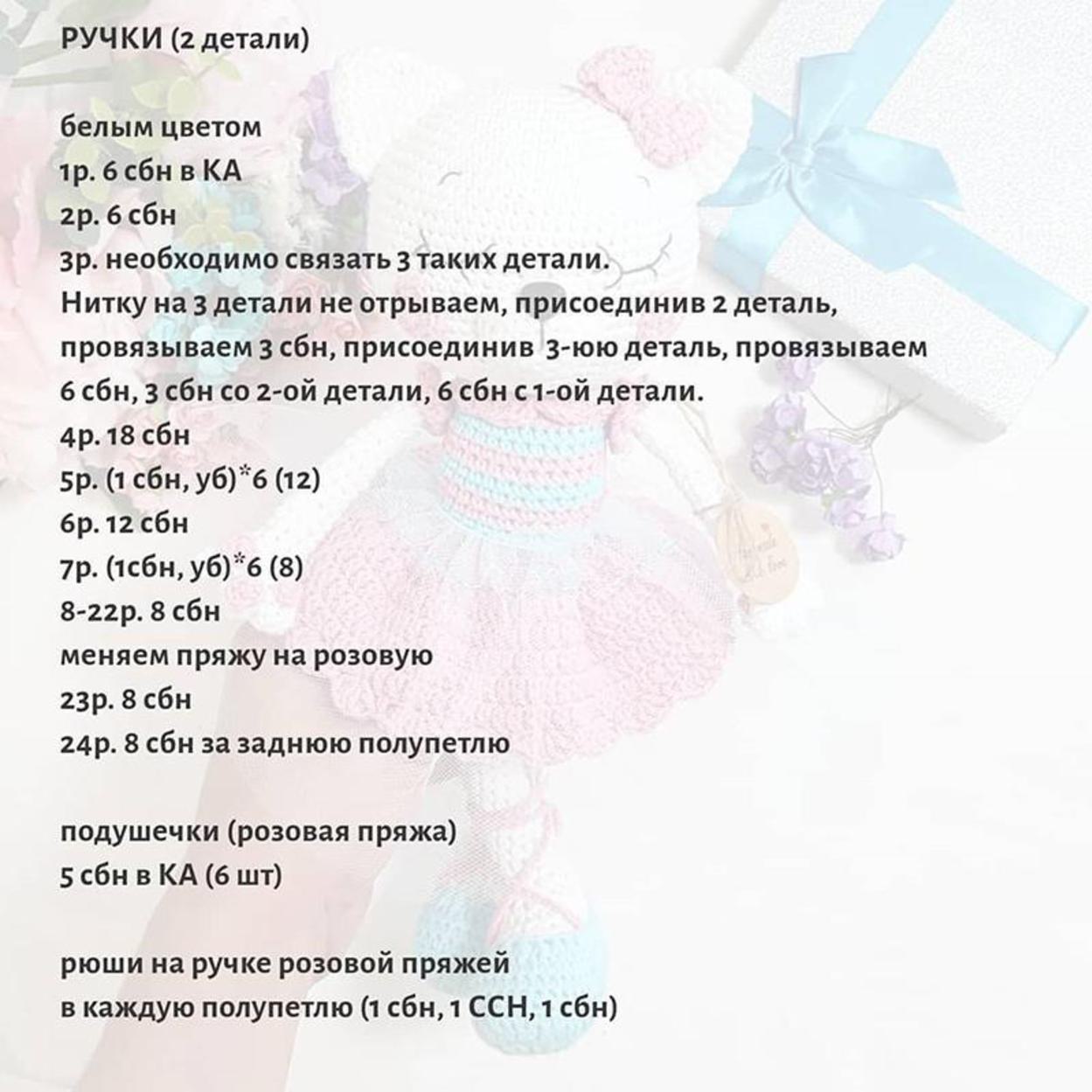 Кошечка балерина крючком. Описание