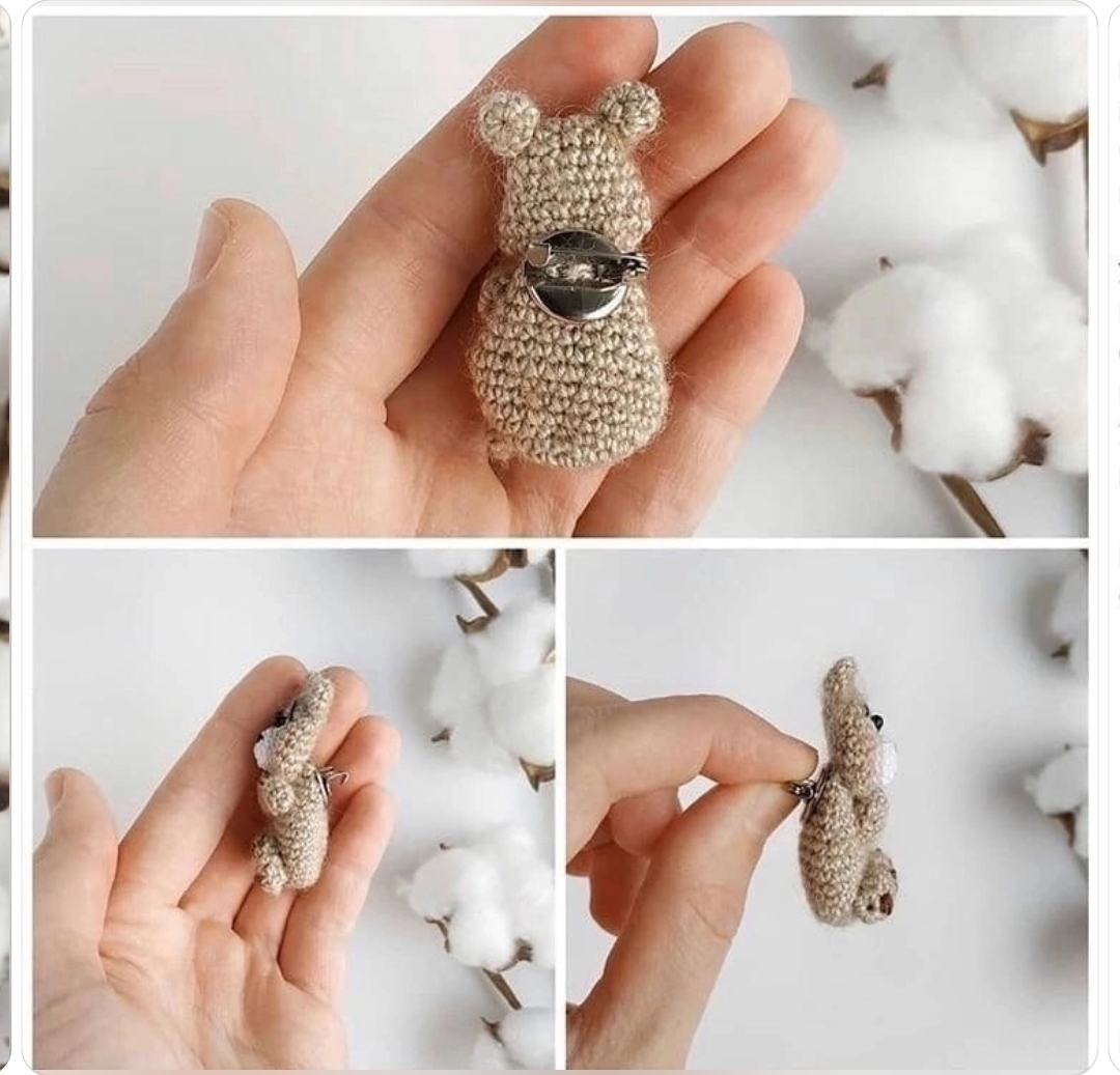 Брошь Мишка крючком