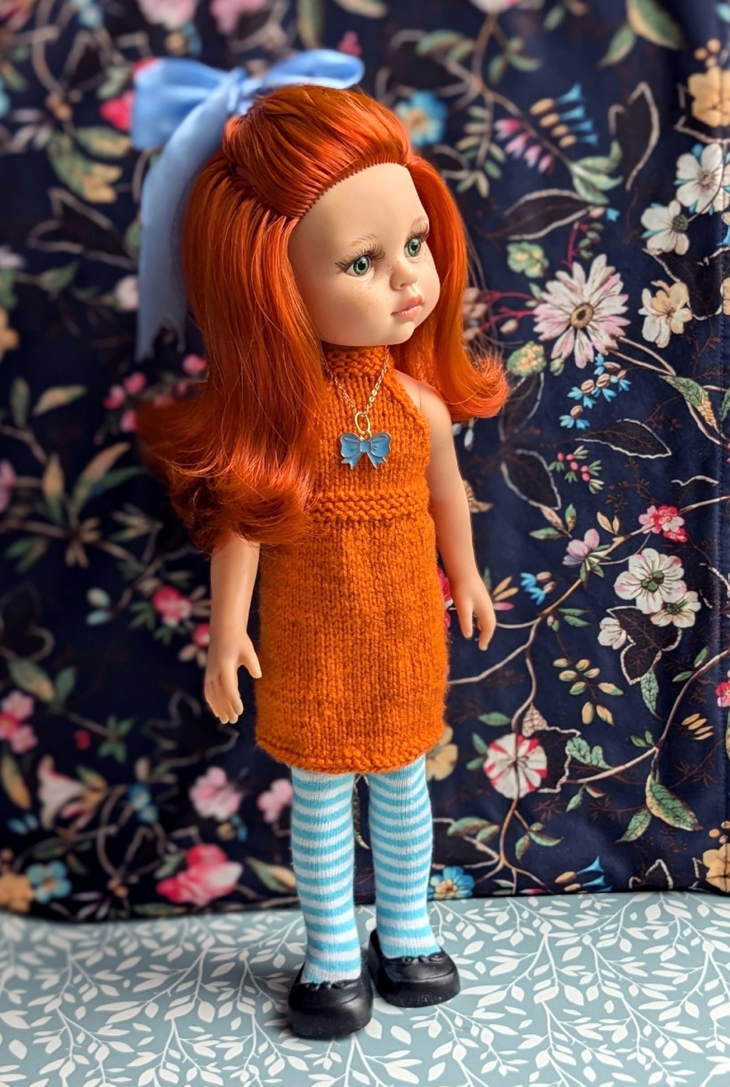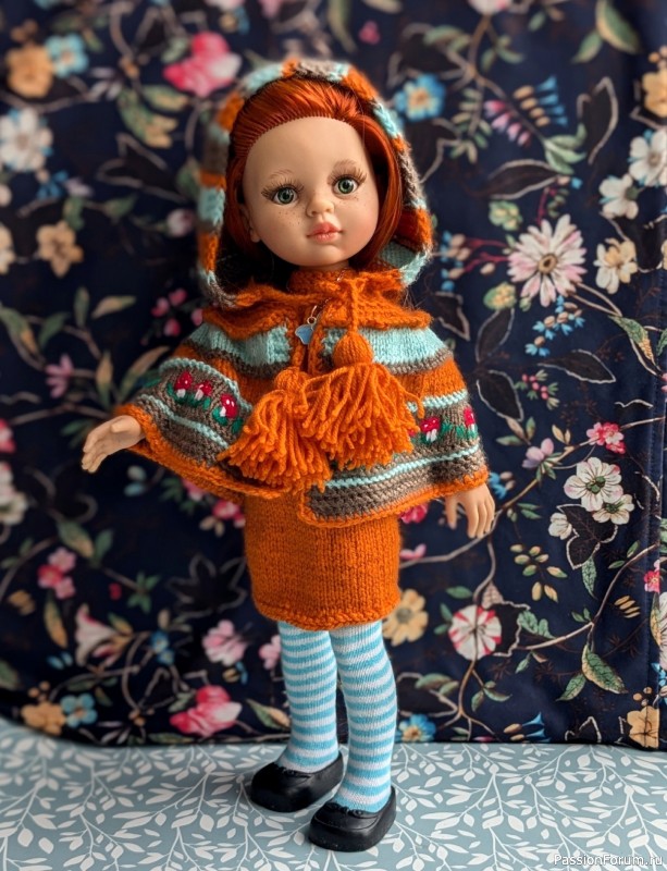 Вот и Эмма снова утепляется, на этот раз у нее платье и накидка с капюшоном - и тепло и нарядно