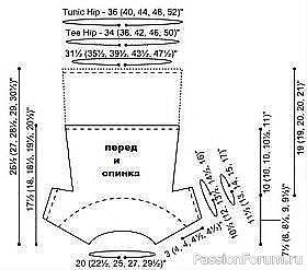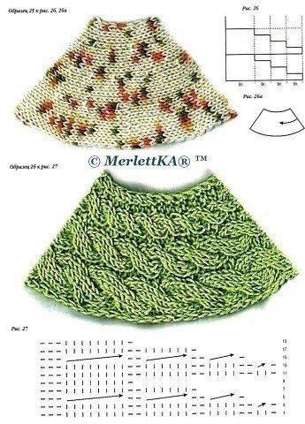 На спицы 4 мм набрать 85 (96,106, 116, 127) п., поставить маркер и соединить петли в круг. Вязать платочным узором 8 кругов, перейти на спицы 4.5 мм и выполнить след. круг лиц.п. В след. кругу выполнить прибавления: 1 (0, 2, 0, 3) изн.п., *1 п. из протяжки изн., 4 изн.п., повторять от * по кругу = 106 (120, 132, 145, 158) п. Через 2 (2, 2, 2½, 2½)” от наборного края повторить круг прибавлений: 1 (0, 0, 1, 2) изн.п., *1 п. из протяжки изн., 3 изн.п., повторять от * по кругу = 141 (160, 176, 193, 210) п. Через 4½ (4½, 5, 5, 5½)” от наборного края вязать круг прибавлений: 1 п. из протяжки (0, 0, 1 п. из протяжки, 0) *2 изн.п., 1 п. из протяжки, 3 изн.п., 1 п. из протяжки, повторять от * до послед. 1 (0, 0, 0, 0) п. круга, 1 (0, 0, 0, 0) изн.п. = 198 (224, 246, 270, 294) п. Продолжить вязание кокетки на высоту 5½ (5½, 6, 6, 6½)”, закончить в изн. кругу. Далее продолжить лицевой гладью и через 7½ (8, 8½, 9, 9½)” разделить петли: 30 (34, 38, 42, 45) лиц.п., перенести след.