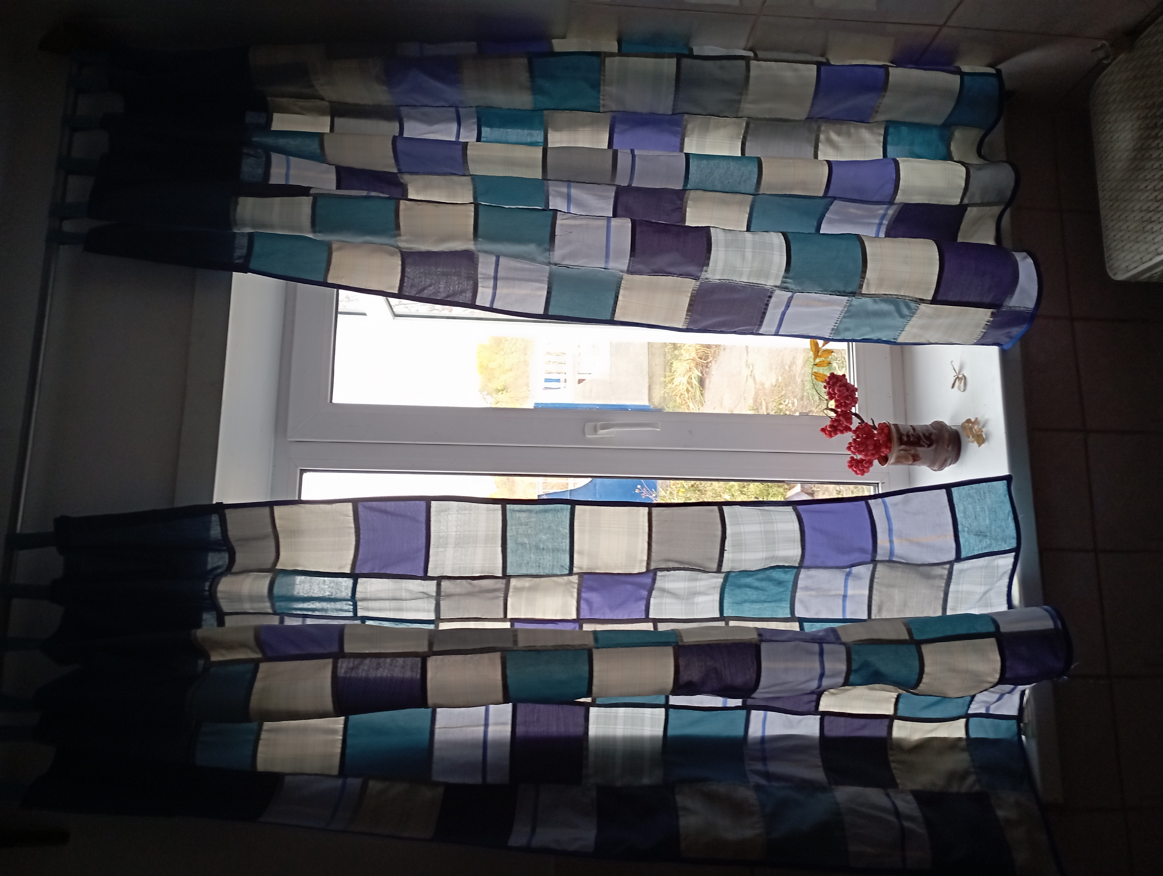Доброе время суток всем рукодельницам. После летнего перерыва хочу показать лоскутные шторы, которые я сшила из рубашек мужа. Висят они у меня в небольшой комнате прихожей.
