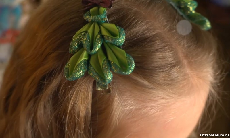 Заколочки «Ёлочки» в технике канзаши. Видео МК