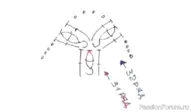 Так, в ряду 32 вот в этой увеличенной части схемы вяжем следующим образом: