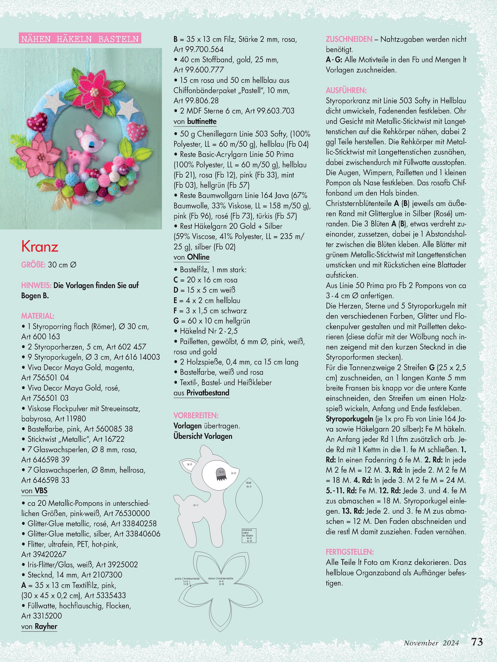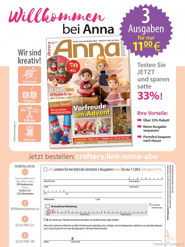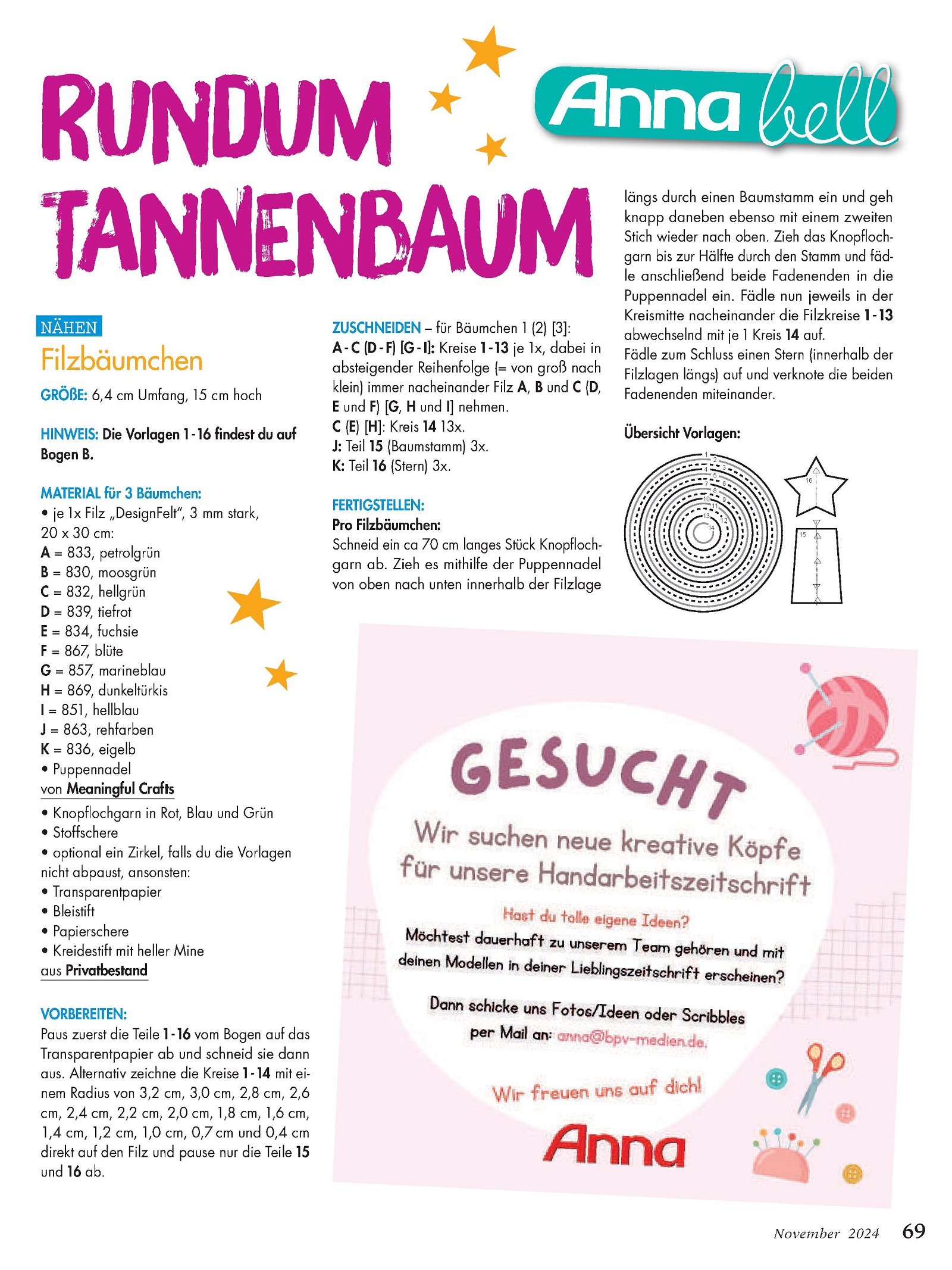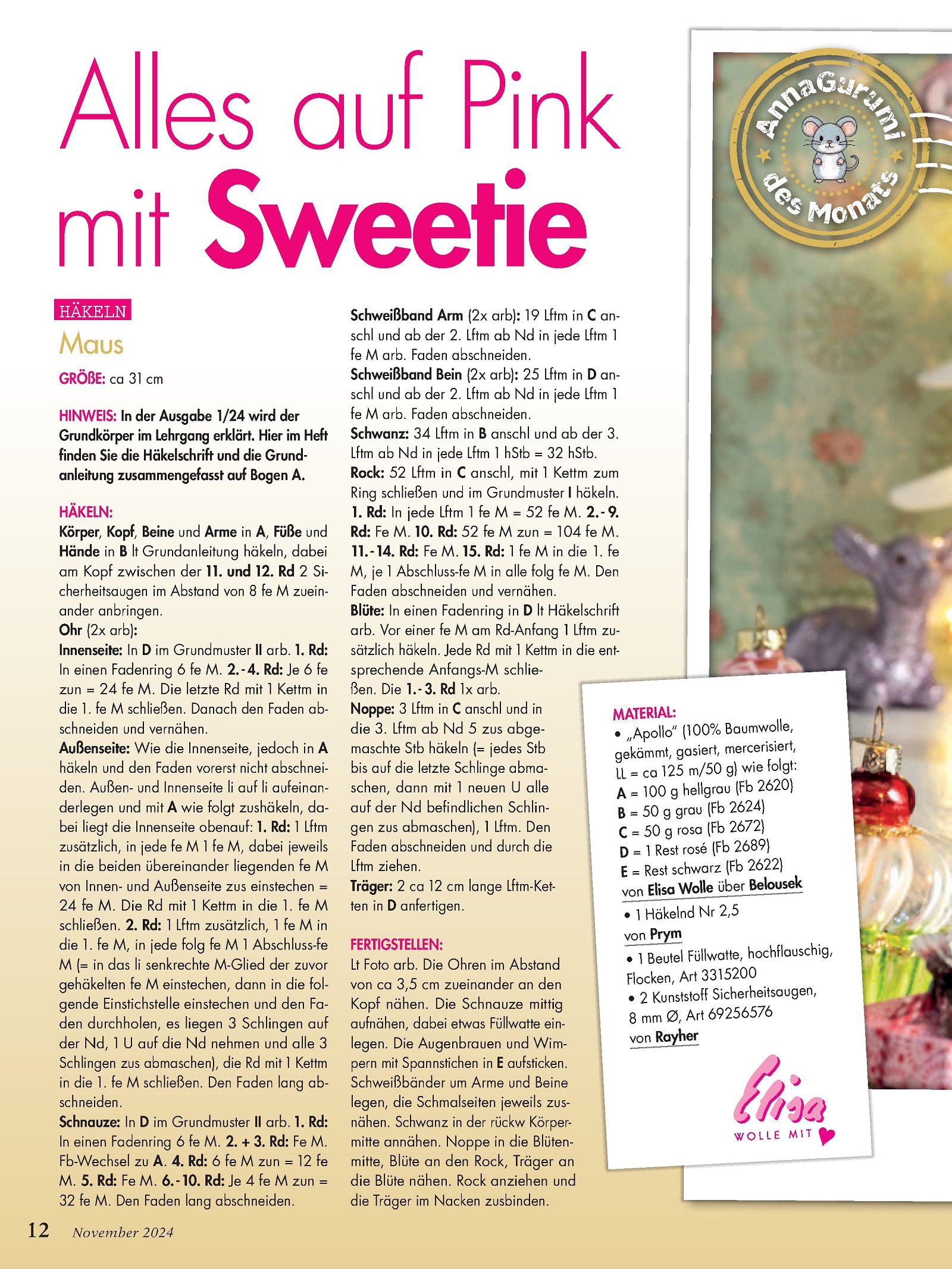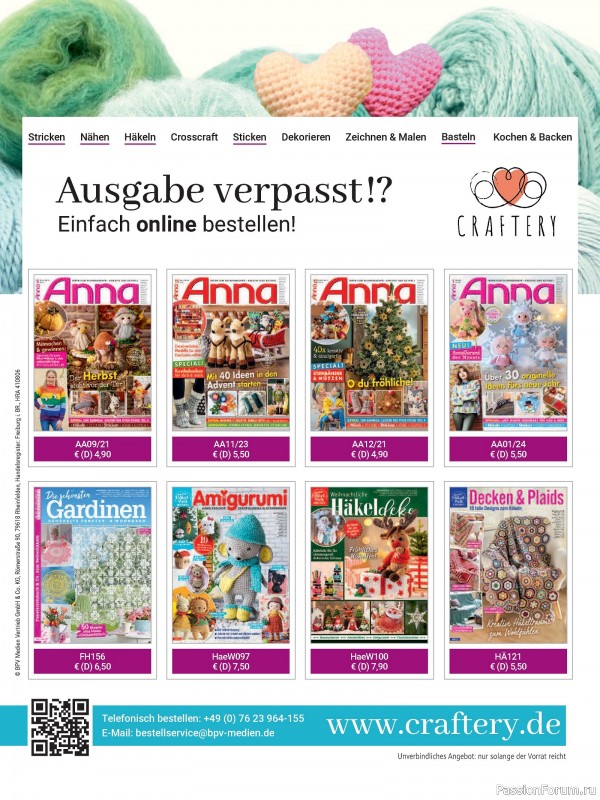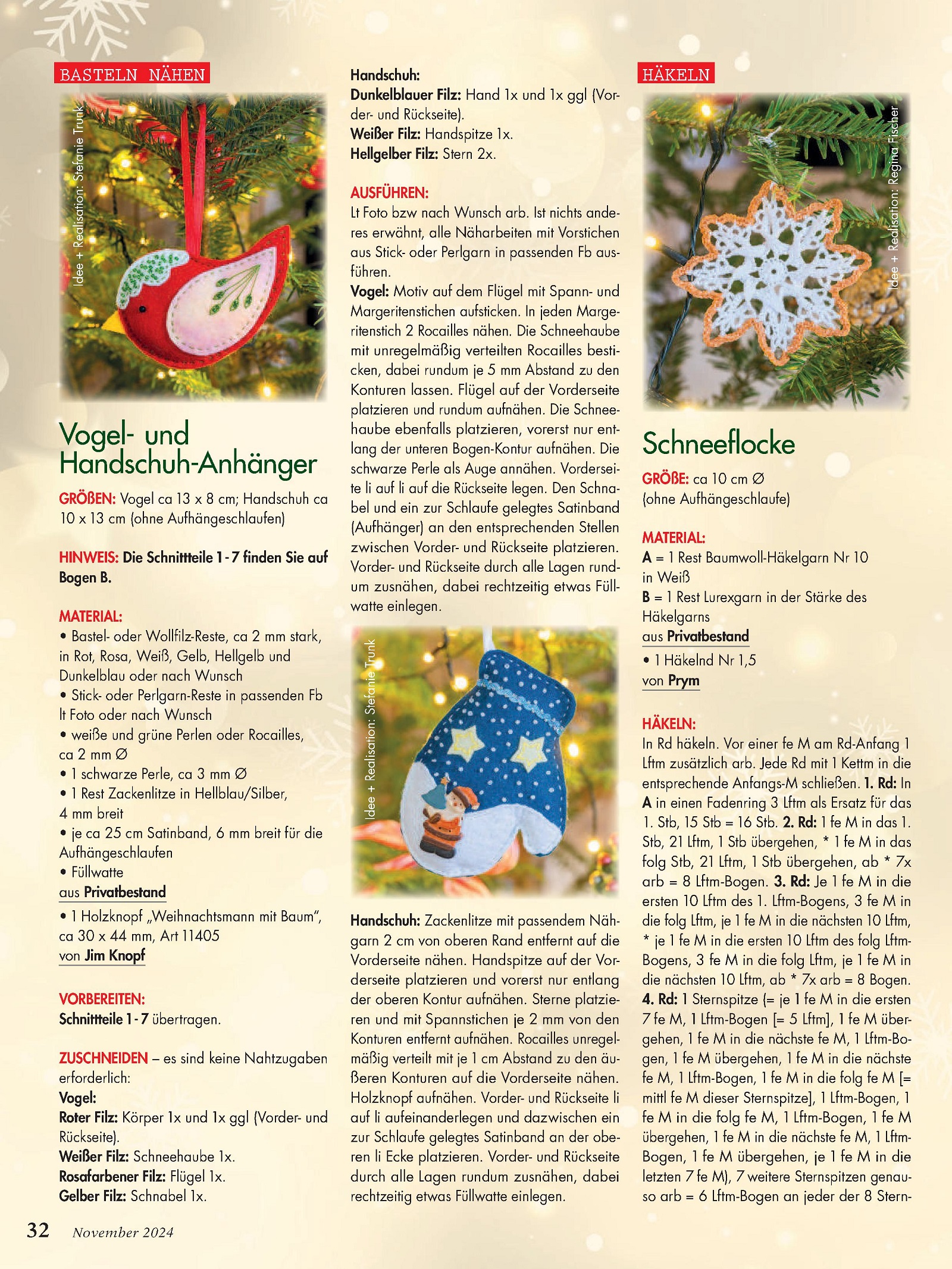 Популярный журнал по рукоделию на немецком языке. В каждом номере журнала собраны уникальные проекты, выполненные в разных техниках - вязание крючком, спицами, вышивка, украшения из бисера, пэчворк и другие.