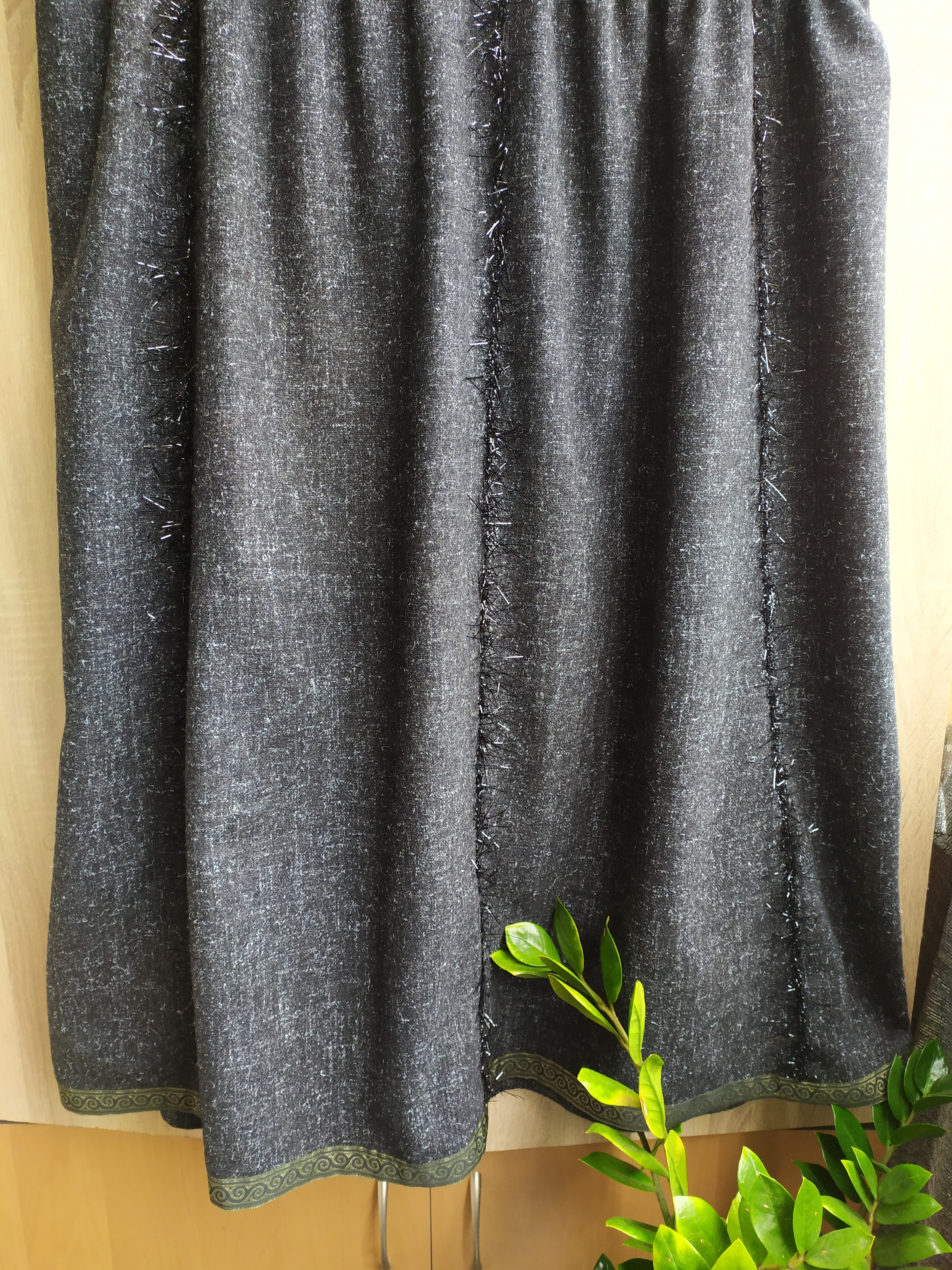 Тесьму первоначально использовала только для подгибки низа юбки. Этот прием мне очень нравится использовать в этом году. Край получается прочным и очень аккуратным, потому что все срезы внутри тесьмы. Экономия ткани при подгибке таким способом 4-5 см, плюс время на обработку! Немаловажно.
