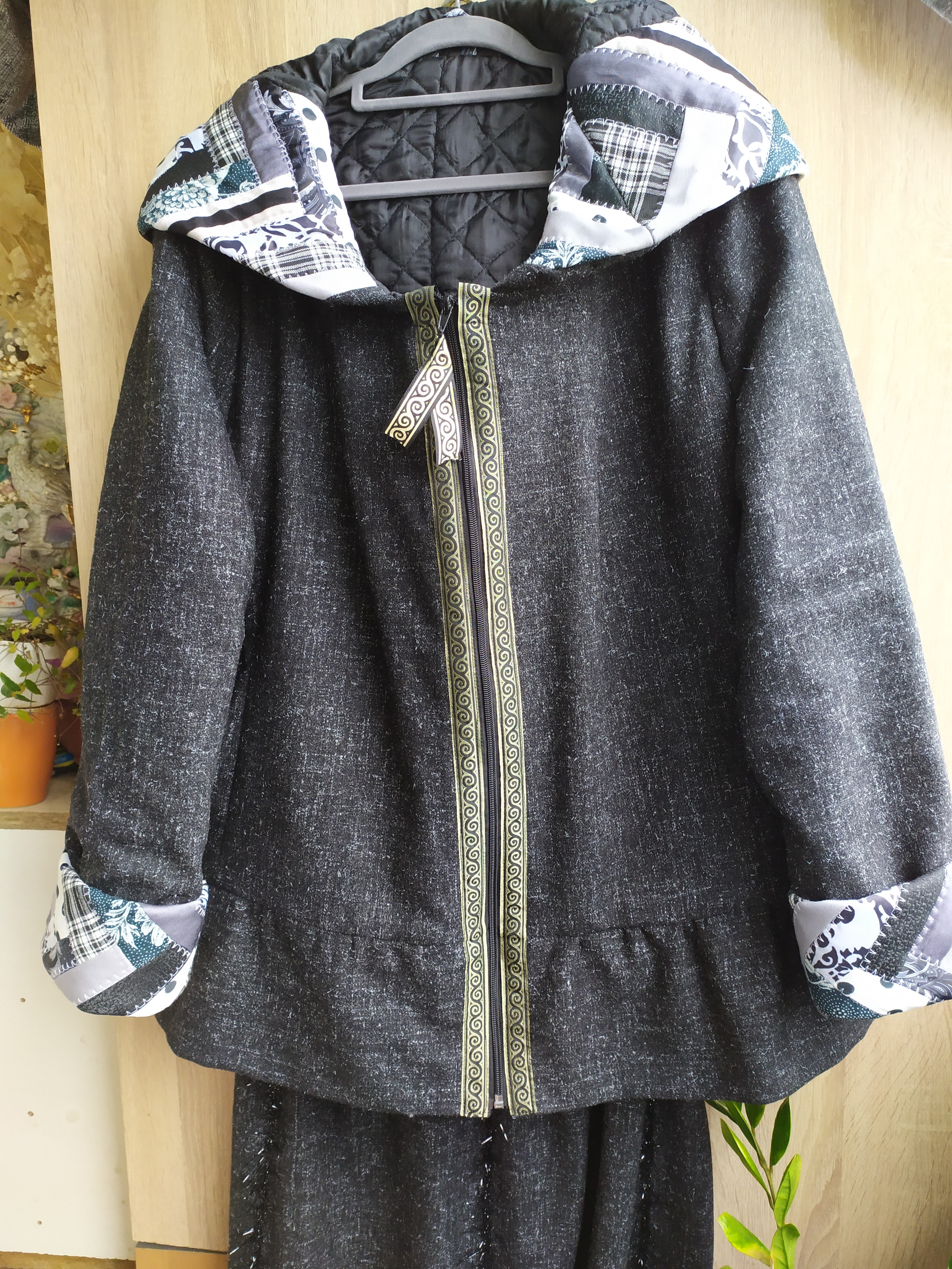 Планировалось, что лоскутными деталями будут отделочные элементы на капюшоне, на обшлагах рукавов, ну и как дальше сложится. Сшила, конечно, этих кос много.